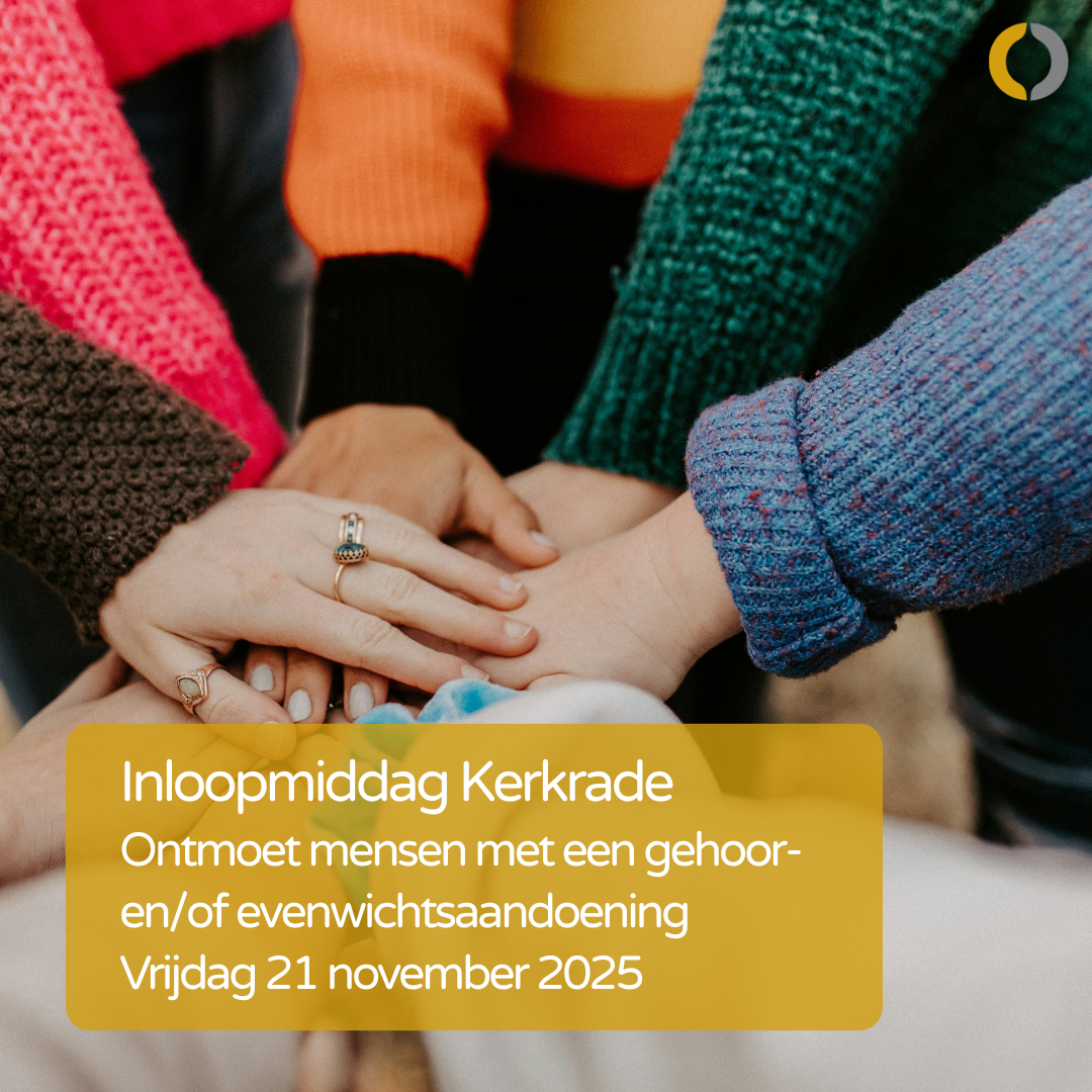 Hoormij∙NVVS regio Limburg organiseert op vrijdag 21 november 2025 een inloopmiddag zodat mensen die te maken hebben met een gehoor- en/of evenwichtsaandoening elkaar kunnen ontmoeten en ervaringen uit kunnen wisselen.