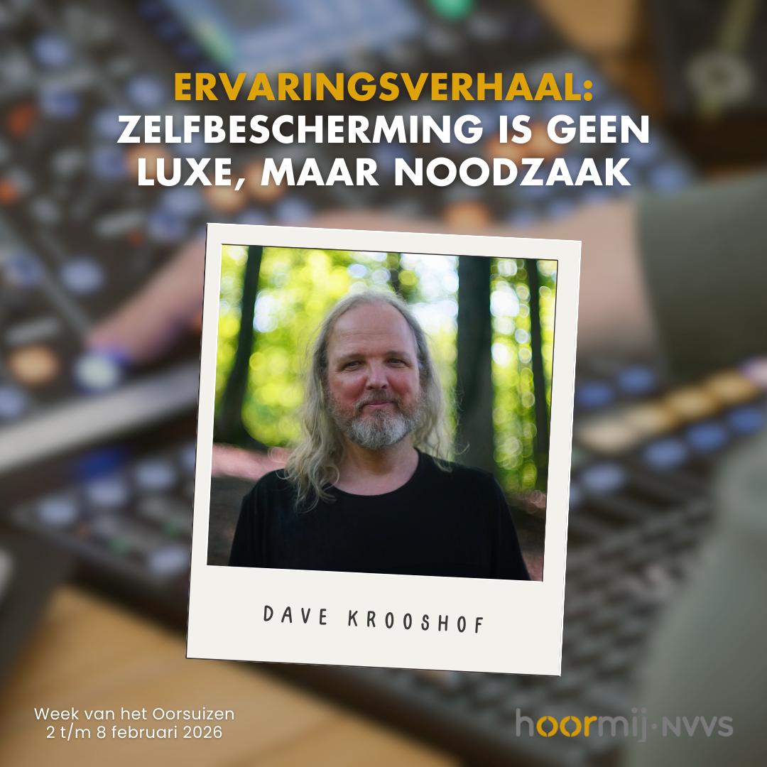 Dave Krooshof is geluidstechnicus. In zijn werk is luisteren essentieel en zijn gehoor is jarenlang een vanzelfsprekend instrument. Tot een lawaai-ongeluk dat vertrouwen abrupt onderuithaalt. “Ik was altijd voorzichtig. Juist daarom was de boosheid zo groot.”